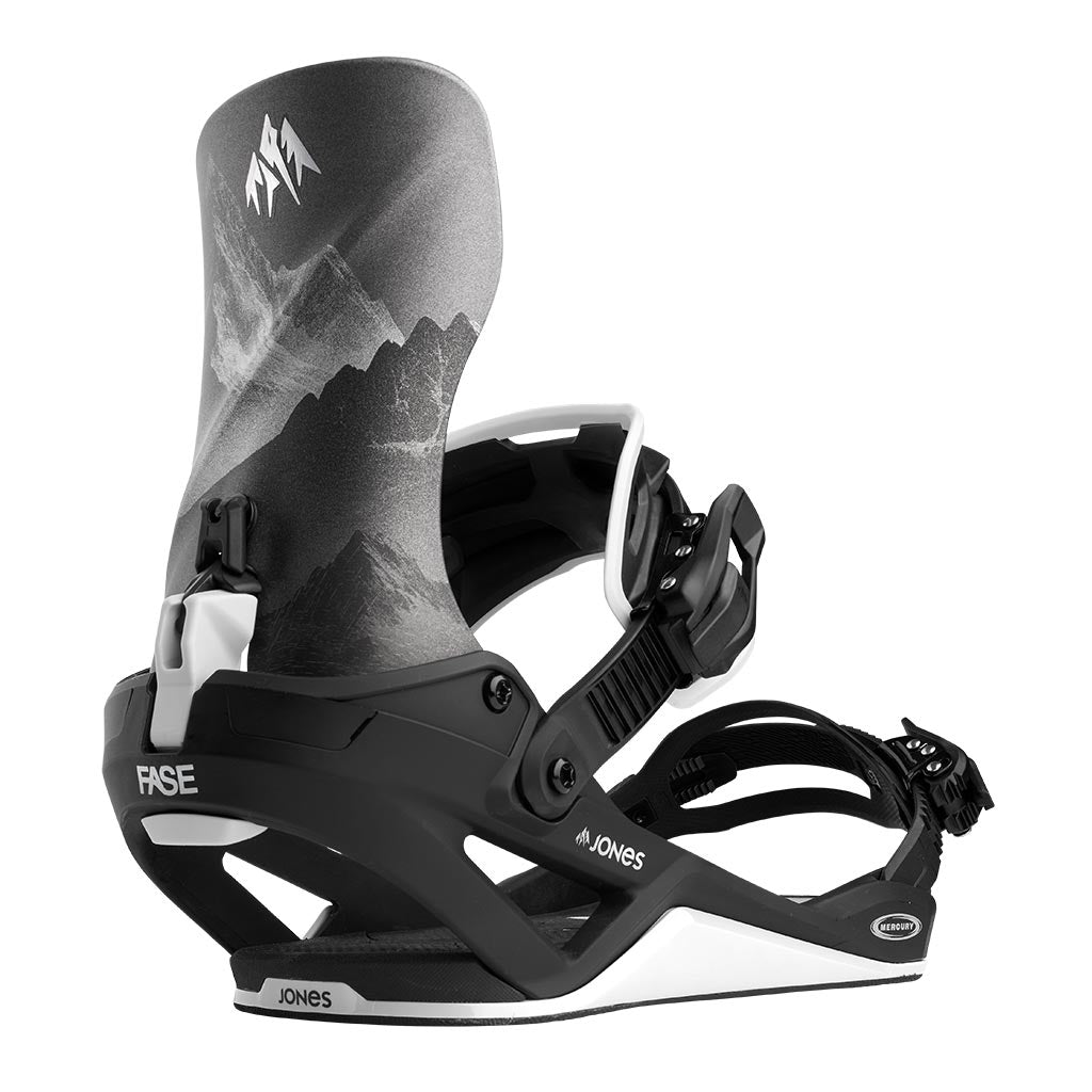 The Mercury FASE® binding is a next generation all-mountain freeride binding built for riders seeking performance and progression. It enhances the locked-in feel of a traditional two-strap binding while delivering all-day comfort and precise response, now featuring the FASE® Fast Entry System for faster entry and exit without compromise. Fully compatible with all snowboard boots, the Mercury FASE is built to perform in every condition and terrain. Seamlessly designed to integrate the FASE System, the size Medium weighs just 895 g (31.6 oz) per binding and has the same weight and volume as other Jones models.